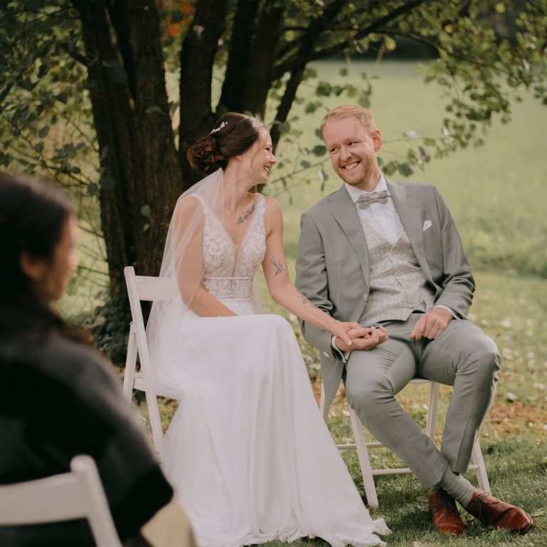 Unsere freie Trauung war einfach nur wundervoll. Dank Fabis Worten blieb kaum ein Auge trocken – und auch die Momente voller Lachen haben alle mitgerissen.